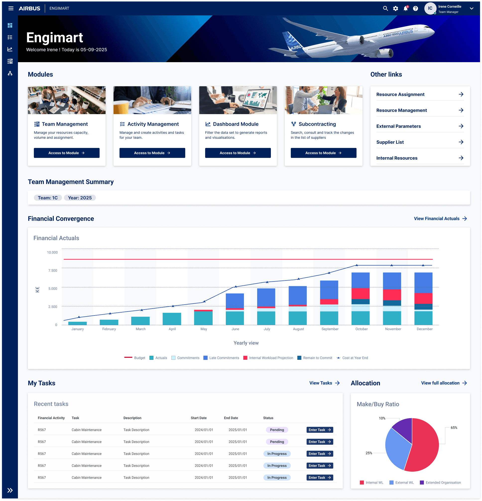 In February 2022, we were given the opportunity to collaborate on designing a centralized platform to streamline Airbus Engineering's business management process, impacting around 13,000 users.